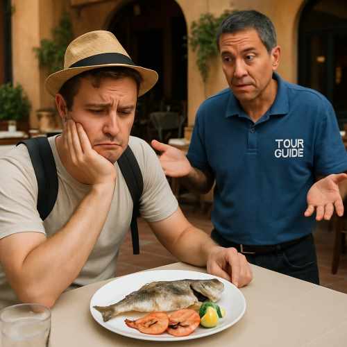 告訴旅行社業務想避開海鮮,結果領隊不知情,餐餐都有魚。更糟的是,帶團的領隊您從未見過,風格與您不合, 旅途中不敢開口問問題,感覺像跟著一個陌生人旅行。